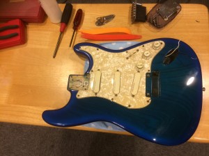 2014年10月9日 2021年2月2日 admin 日記楽器 今日の一本 久々のこのコーナー 今日は93年製のフェンダーストラトキャスター アメリカンデラックスなんたらです(不明) レースセンサー良いじゃないですか!! シュパーゼルとローラーナットと ウィルキンソン (オリジナルはライセンス物のフロイドローズが付いてたらしい) ピックガードは変形してフレットもすり減ってるし コンディションはお世辞にも良いとは言えないですが 中々のタタズマイ 惚れるわぁ~!! いいよねストラト!! 欲しい!!って思える一本でした! FacebookXBlueskyCopy