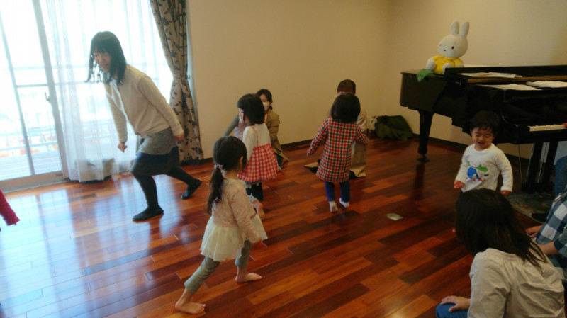 1年リトミックをして下さった方、4月から新しく入会して下さった方と、一緒にさせていただいてます。